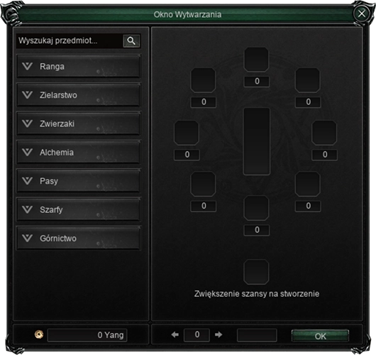 Na serwerze znajduje się przejrzyste okno wytwarzania. Klikając ikonkę okna wytwarzania [ikona okna wytwarzania] w ekwipunku, można wytworzyć interesujący przedmiot. W okienku są także podziały na kategorie oraz przydatną wyszukiwarkę.