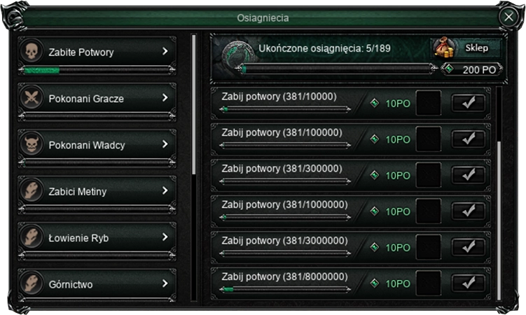 Zdobyte punkty można wykorzystać w sklepie osiągnięć, gdzie dostępne są unikalne przedmioty i bonusy, dzięki czemu system nagradza zarówno zaangażowanie, jak i regularną grę.