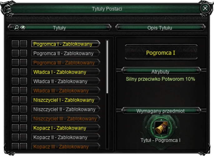 jest powiązany z rankingiem, ale nie ogranicza się wyłącznie do niego. Gracze, którzy zajmą najwyższe miejsca w tygodniowym rankingu, otrzymują specjalny tytuł z bonusami, aktywny przez 7 dni. To wyróżnienie zarówno prestiżowe, jak i praktyczne, bo zapewnia dodatkowe korzyści podczas gry.System pozwala łączyć efekty — można korzystać z bonusów jednej tytułu, jednocześnie używając wyglądu innego, co daje pełną swobodę w personalizacji postaci i podkreślaniu swojego stylu.