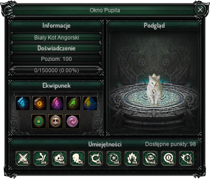 Trener Zwierzaków – Zwiększa szansę na oswojenie zwierzaka - Maksymalny poziom umiejętności: 10 punktów.