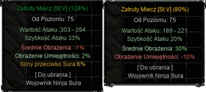 Zatruty Miecz + Miecz Exp 150 lvlWyjaśnienie: Oba przedmioty posiadają ten sam typ, oraz wbudowane śr/um. Różnica poziomu broni nie ma znaczenia.